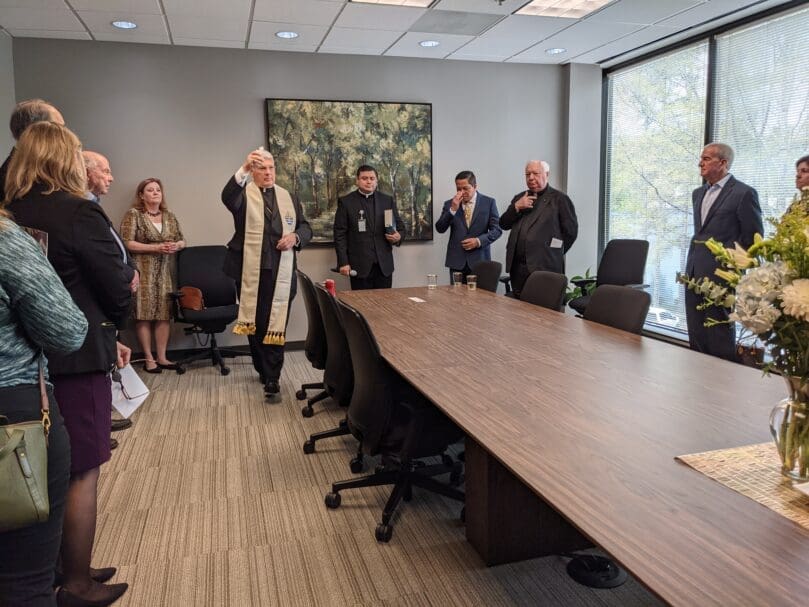 Archbishop Hartmayer joined guests at an open house March 28 to celebrate renovations to the Catholic Foundation offices that will enable the staff to better work and to grow. He offered a prayer and blessed the updated office space.