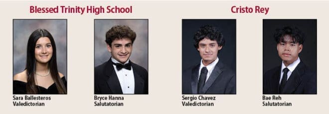 The 2023 valedictorian at Blessed Trinity High School is Sara Ballesteros, daughter of Eliana Perez and Diego Ballesteros. The family worships at St. Peter Chanel Church, Roswell. Ballesteros plans to attend Georgia Institute of Technology to study industrial and systems engineering.