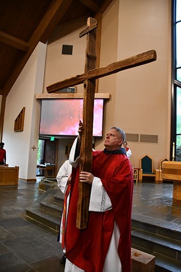 St. Philip Benizi Church’s pastor, Father Michael Martin, OFM Conv, leads the Good Friday service in 2023 at the parish. He was appointed the fifth bishop of the Diocese of Charlotte April 9. Photo by Jackie Holcombe