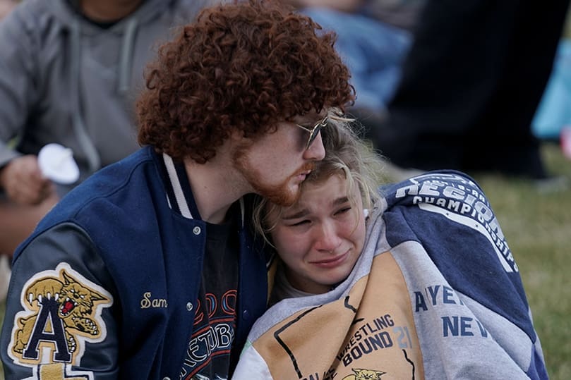 The parish’s usual Wednesday evening Mass draws between 40 and 50 people. Hours after the tragedy, some 100 believers in grief and shock found support with each other as families with young people filled the pews. Father Gilbert Exumé, pastor, shared a message of comfort with those attending.