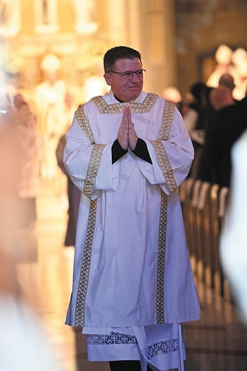 Deacon Chris Johnson smiles as he walks out of the Mass of ordination Feb. 1 at the Cathedral of Christ the King in Atlanta. He was one of seven ordained to the permanent diaconate. Photo by Julianna Leopold