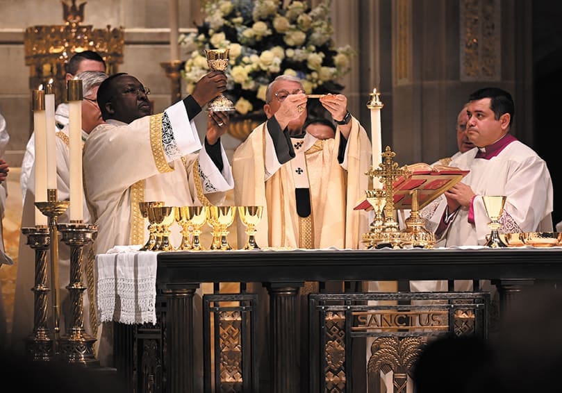In a ritual rich with tradition, with readings in English and Spanish, the candidates laying prostrate in front of the altar and the laying on of hands by Archbishop Hartmayer, the men’s five years of study and prayer concluded. The men put on the stole worn diagonally across the chest and the tunic, known as a dalmatic, before the archbishop handed them the book of the Gospels, with the words: “Believe what you read. Teach what you believe. Practice what you teach.”