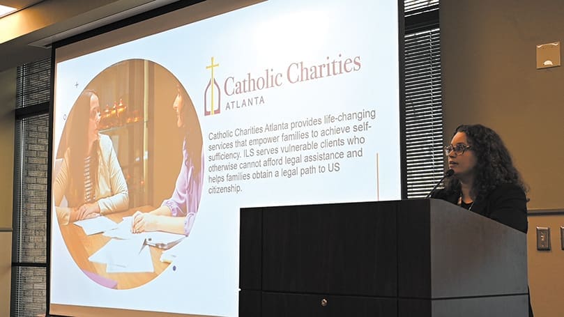Kylie Gainey, senior director of immigration legal services at Catholic Charities Atlanta, led the event and addressed the impact of recent presidential directives and Georgia legislative actions on immigrants in the community.
