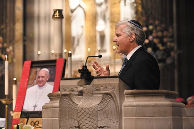 Rabbi Laurence Rosenthal, of Ahavath Achim Synagogue in Atlanta, talked about Pope Francis’ impact on interfaith relations following a memorial Mass at the Cathedral of Christ the King. Photo by Julianna Leopold