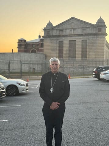 Bishop Bernard E. Shlesinger III is photographed outside FCI Atlanta, where he ministers to the incarcerated. Photo by Imelda Richárd