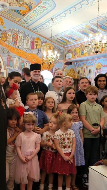 Archbishop Borys Gudziak of the Ukrainian Catholic Archeparchy of Philadelphia visits with the children of Mother of God Ukrainian Catholic Church in Conyers. Photo by Mariangeles Burger