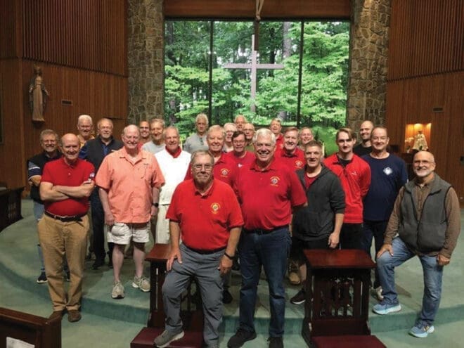 DUNWOODY—More than 30 members of the Knights of Columbus Council 11402 at All Saints Church came together recently to renovate the church.