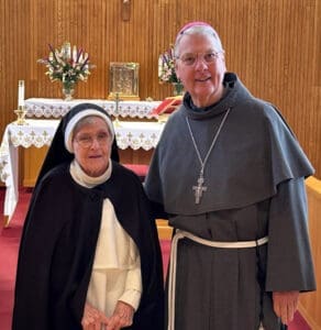 Sister Mary Kateri, OP, is photographed with Archbishop Gregory J. Hartmayer, OFM Conv., during a visit to Our Lady of Perpetual Help Home. Photo by Father Paul Burke
