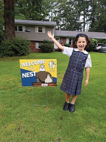 Emma Mojica celebrates her first day of school as a kindergartener at Immaculate Heart of Mary School in Atlanta. Mojica is attending the school with the help of the Georgia Promise Scholarship. Photo courtesy of Lina Mojica