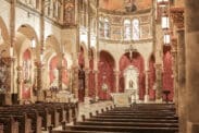 The new triumphal arch, part of the redecoration project at the Basilica of the Sacred Heart of Jesus, embodies the church’s historical and artistic legacy. The dome symbolizes Heaven. At its center, Christ stands on the earth as Salvator Mundi, (Savior of the World) with angels in adoration. Photo by Jackie Holcombe