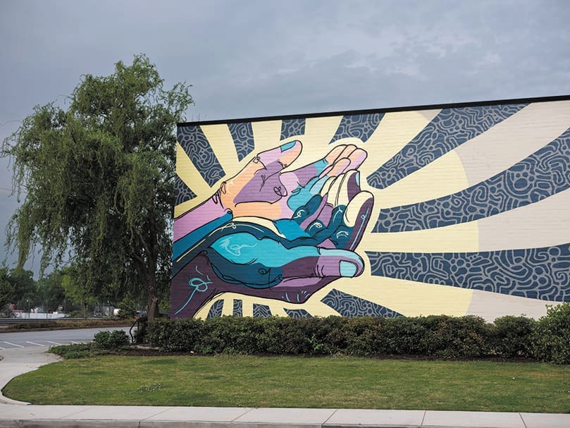 The mural "Radiate,” by artist Jonesy, inspires visitors to the St. Vincent de Paul Georgia Service Center in Chamblee. The Bezos Day 1 Families Fund recently granted $5 million to SVdP Georgia to help connect families with housing.