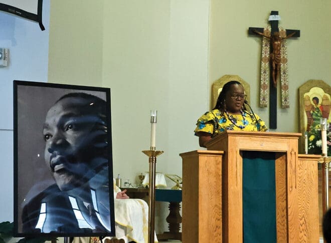 Ophelia Adje-Awuah of the Ghanaian Catholic Community in Atlanta served as a lector for annual archdiocesan Mass commemorating the life and legacy of Dr. Martin Luther King Jr. This year’s Mass was at Sts. Peter and Paul Church. Photo by Kathryne Pusch
