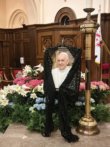 Pope Francis’ portrait is displayed during a memorial Mass at Holy Spirit Church, Atlanta. The pope died on Easter Monday, April 21, and was remembered at Masses and vigils across the archdiocese. Photo by Julianna Leopold