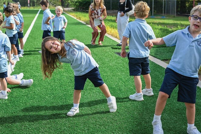 The end of May and early June marked the 10th anniversary of Laudato si’, Pope Francis’ landmark encyclical on care for the environment. Students at St. Thomas More School play on the school’s new turf field, installed with a water retention system to prevent flooding. The Decatur school celebrated its 75th anniversary with sustainable campus-wide renovations. Photo by Julianna Leopold