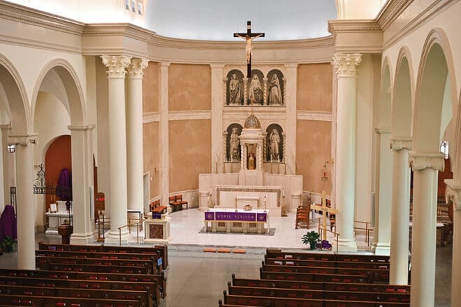 One of the Archdiocese of Atlanta’s oldest parishes completed a milestone renovation, the most extensive since opening its doors in 1898. Parish leaders at the Basilica of the Sacred Heart of Jesus undertook the project to restore the Romanesque church, removing accumulated liturgical additions. As part of the renovation, the parish converted an overlooked closet into a eucharistic chapel, reusing some of the older sacred artifacts in this new sacred space. Its completion was celebrated by Archbishop Hartmayer on Nov. 16. “Today’s rededication and consecration of this new beautiful altar,” said the archbishop at Mass, “are powerful signs that Christ continues to dwell with his people here in the heart of Atlanta.”