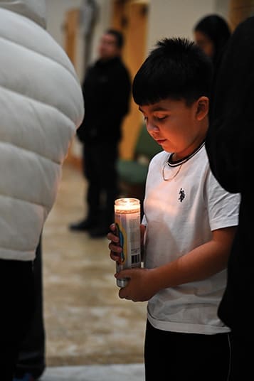 A young boy holds a candle at a bilingual Mass to pray for immigrants at Holy Cross Church in Atlanta Oct. 22 as part of a national initiative of public witness. Photo by Julianna Leopold