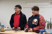 Students, Andrew Wiegand left, and Liam Wolfe right, competed on Marist School’s Theology team during the Theology bowl Feb. 6. The bowl challenged students through seven fast-paced rounds covering a wide range of topics. Photo by Julianna Leopold
