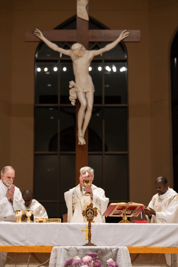 Bishop Bernard E. Shlesinger III celebrated the Mass of presentation of the relic of Padre Pio at St. Matthew Church in Tyrone. Photo by Julianna Leopold
