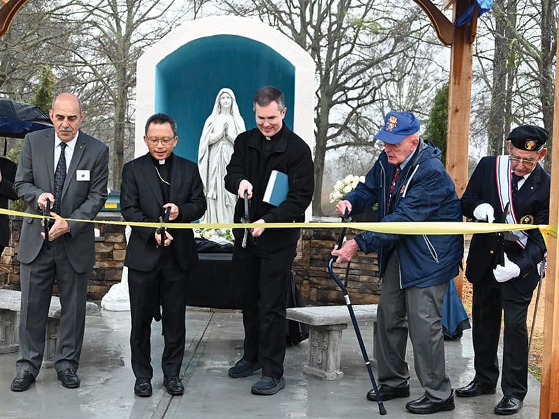 The dedication and blessing of the grotto took place on Feb. 15 with Auxiliary Bishop John N. Tran. Today, the Marian Grotto welcomes visitors who place flowers, offer prayers, and recite the rosary.